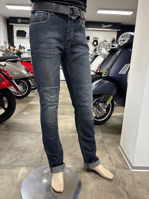 Café Racer Herren-Hose Blau (inkl. Gürtel) der Marke PMJ – EU-Größe: 46 (= M)