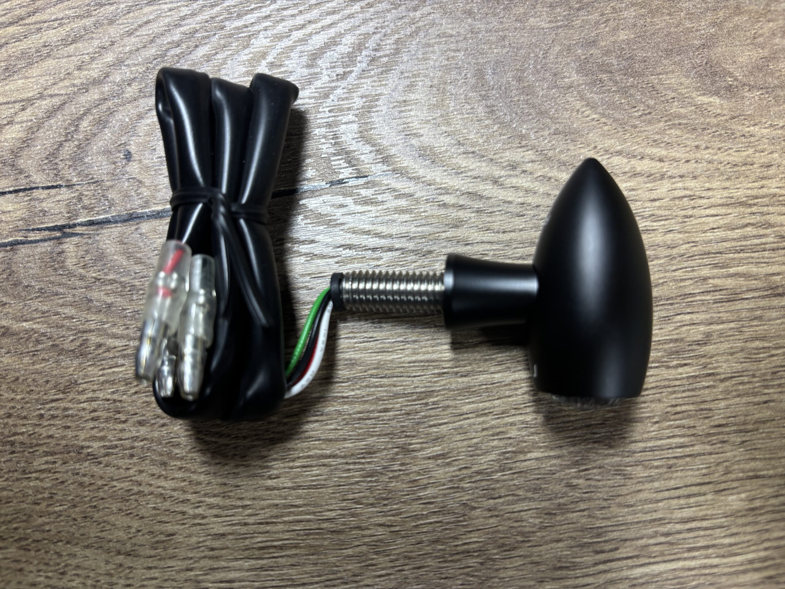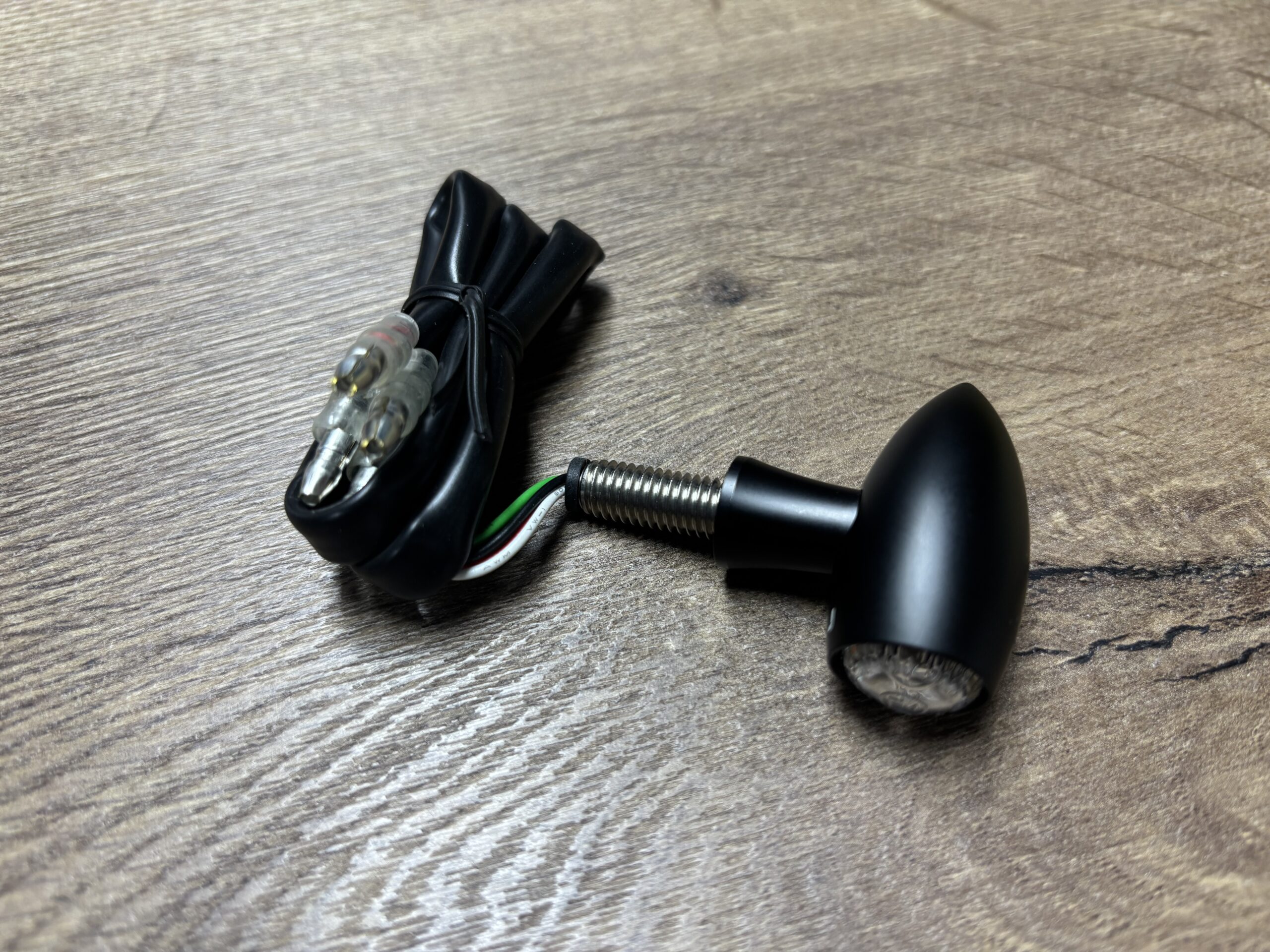 Montiert wird über ein M8x1,25 Gewinde; Widerstände zur Anpassung der Blinkfrequenz sind im Lieferumfang enthalten.